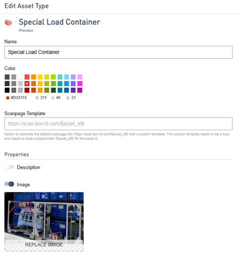 Asset types describe different types of load carriers or racks.